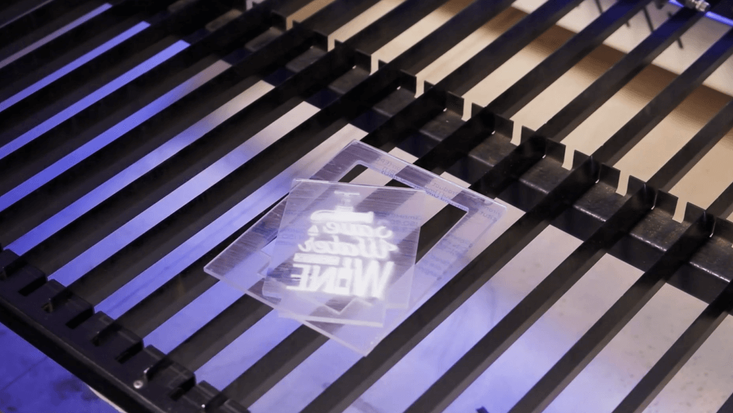 После гравировки изделие нужно промыть. Делайте это только водой — без спирта, ацетона и других растворителей. Они могут испортить материал: акрил мутнеет, а экструзионное оргстекло нередко растрескивается.